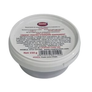 Ciment pentru etansare esapament 150g Specificatii: Pasta de lipit esapament (Ciment) Caspian 150g Ciment pentru etansare esapament rezistent la temperaturi inalte de pana la 1100 de grade Rezistent la apa si monoxid Nu se crapa si nu se contracta la vulcanizare